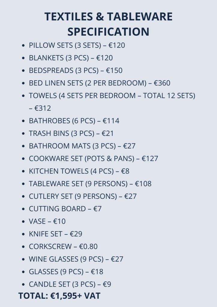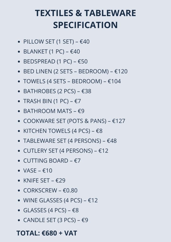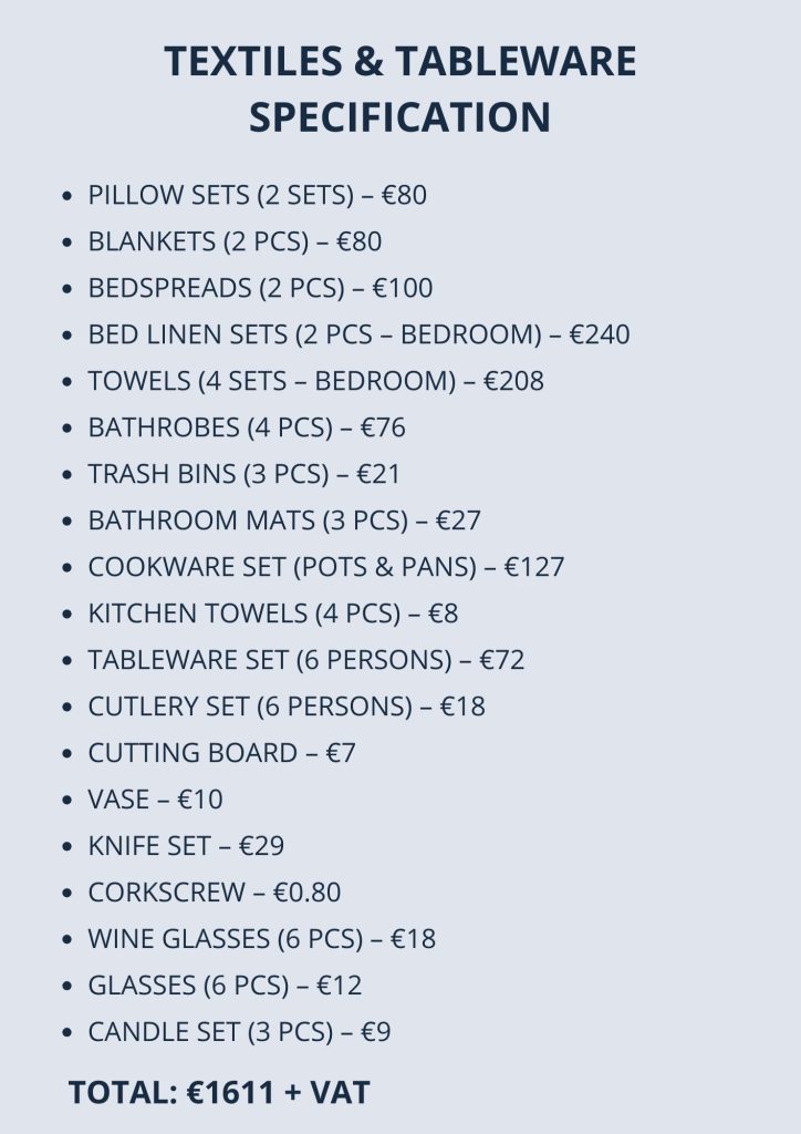 Проект меблировки 15 апартаментов на Кипре - полный комплект мебели, текстиля и посуды