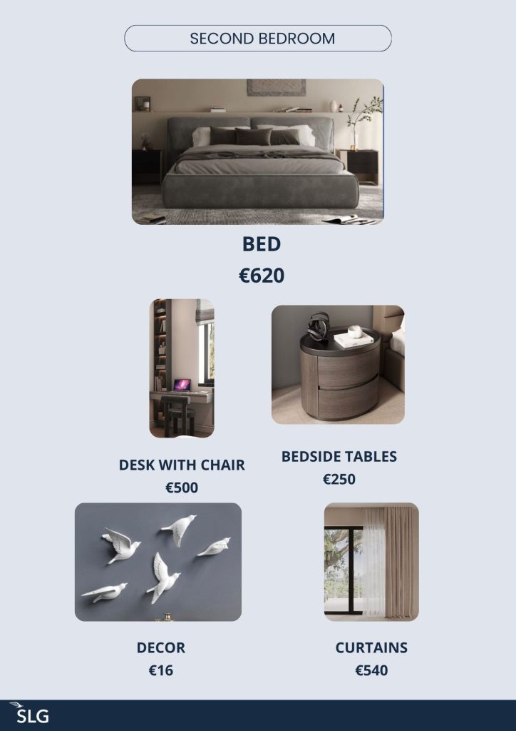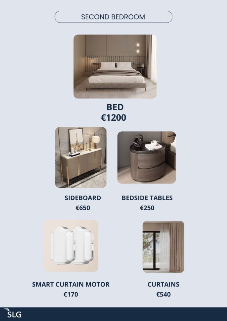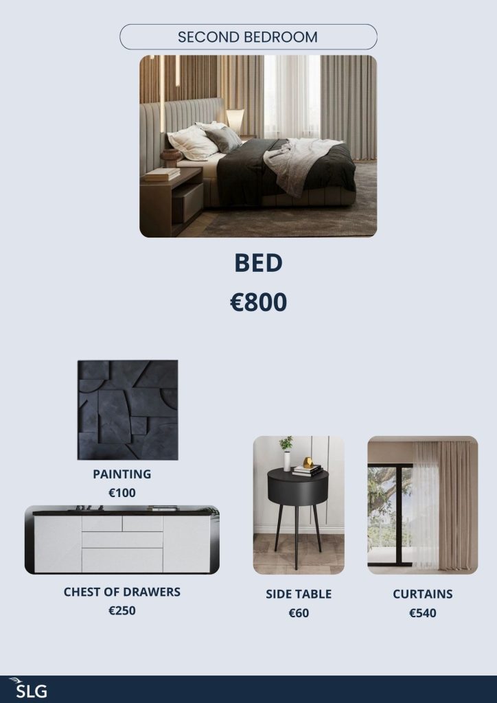 Для застройщика было разработано 5 вариантов комплектации квартир, каждая из которых включает полностью подобранную мебель, освещение, текстиль и кухонную посуду. Все предметы интерьера были подобраны у производителей в Китае, что позволило оптимизировать бюджет проекта без потери качества.